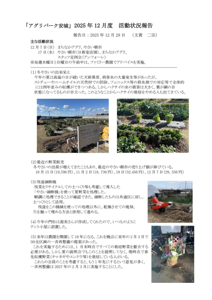 HOME > 最新情報 > 最新情報 25年12月アグリパーク安城活動報告 2025年12月29日 Twitter Share Pocket Hatena LINE コピーする Twitter Share Pocket Hatena LINE コピーする -最新情報
